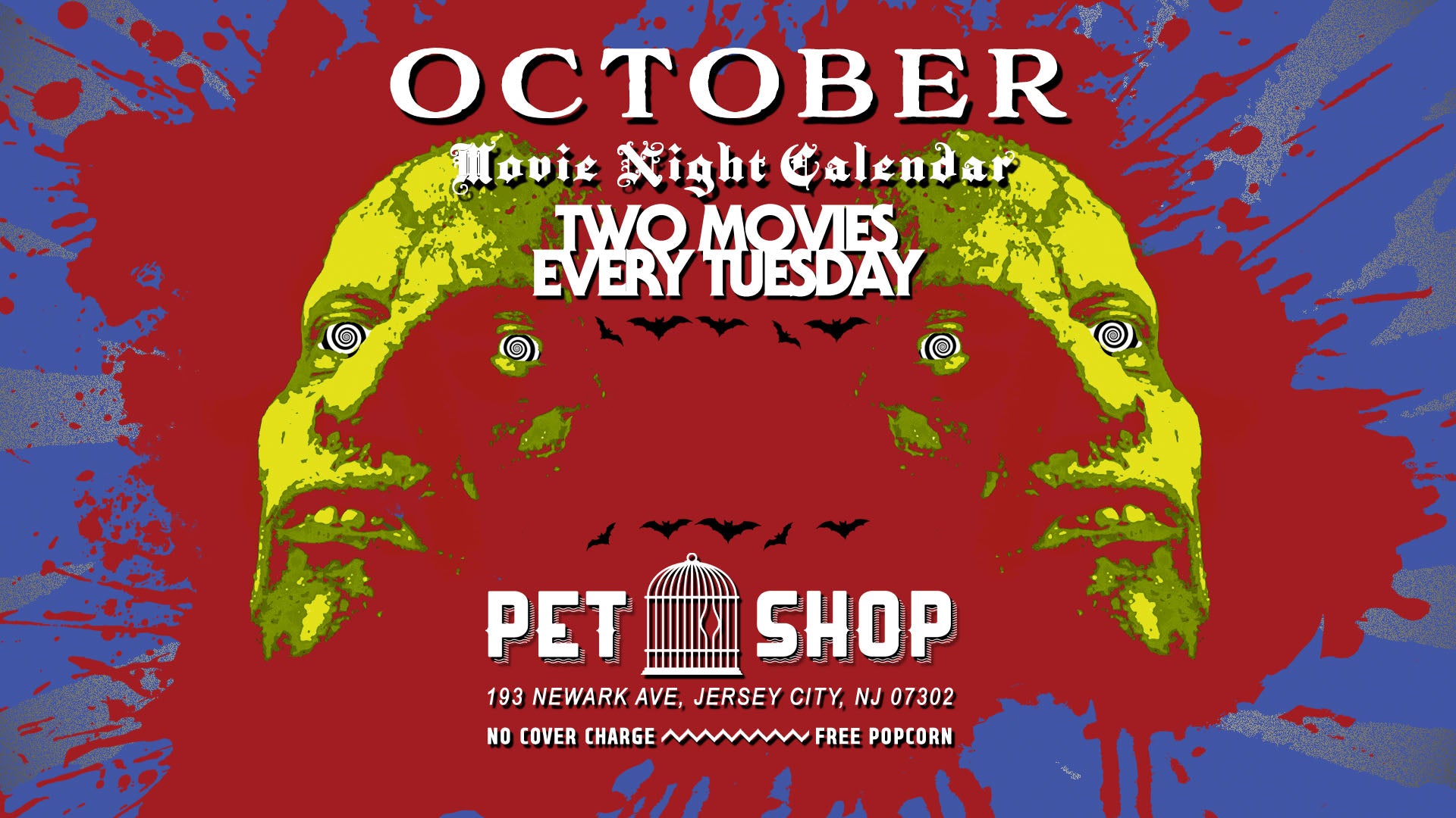 Join us at Petshop in Jersey City, NJ this October! Two movies every Tuesday at 8PM with specially curated music at 7PM.